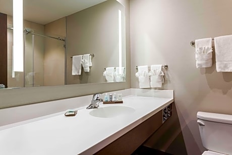 Located 16 miles from Whyte Avenue, Wyndham Garden Edmonton Airport offers 4-star accommodations in Leduc and has a bar. Providing a restaurant, the property also features a fitness center, as well as a sauna and a hot tub. The property provides a 24-hour front desk, airport transportation, a shared lounge and free WiFi throughout the property. At the hotel, each room comes with a desk. Complete with a private bathroom equipped with a hairdryer, guest rooms at Wyndham Garden Edmonton Airport have a TV and air conditioning, and certain rooms include a seating area. All rooms will provide guests with a fridge. Guests at the accommodation can enjoy a buffet breakfast. A business center and vending machines with snacks and drinks are available on site at Wyndham Garden Edmonton Airport. University of Alberta is 18 miles from the hotel, while Shaw Conference Centre is 18 miles away. Edmonton International Airport is 2.5 miles from the property.