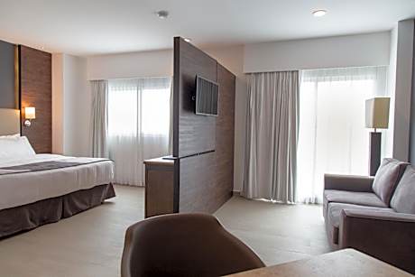An outdoor pool, gym and stylish suites with free Wi-Fi can be found at the HS HOTSSON Smart León Centro Max. This modern hotel is located next to Max Leon Shopping Center. The air-conditioned suites at HS HOTSSON Smart León Centro Max have bright, functional décor. Each suite comes with a seating area. A mini-bar and coffee maker are included. The restaurant serves à la carte cuisine and has views of the pool. The airy lobby contains an art gallery and spacious lounge areas. HS HOTSSON Smart León Centro Max is located opposite the Enrique Fernandez Martinez Sports Center. The historic city center is 3.7 mi away. Car hire and transport services can be arranged at the 24-hour reception at an extra cost, and free private parking is offered on site.