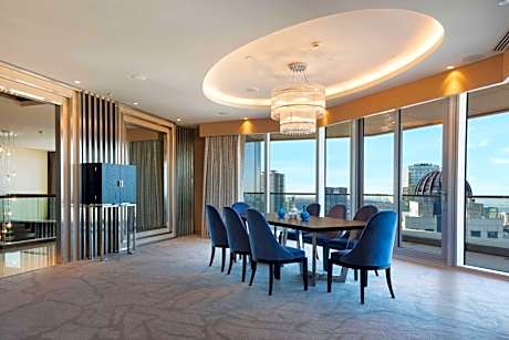 Experience an abundance of unparalleled facilities and features at Wyndham Grand Istanbul Levent Hotel & Conference Center.Maintain seamless communication using the complimentary Wi-Fi at hotel. Effortlessly arrange transportation to and from the airport using the hotel's airport transfer services.Discovering İstanbul becomes even more accessible through the taxi and car hire amenities provided at the hotel. For visitors traveling by automobile, complimentary parking is available. During your stay at this fantastic hotel, the attentive front desk personnel can provide you with a range of amenities such as concierge service, luggage storage and safety deposit boxes. In search of city's top entertainment, seek assistance at the hotel's ticket service and tours for reservations. During chilly days and evenings, the hotel provides an in-house fireplace to ensure your warmth. At the hotel, utilize the on-site dry cleaning service and laundry service to maintain your beloved travel attire fresh, allowing you to bring fewer clothes. Craving relaxation? Make the most of your stay at the Wyndham Grand Istanbul Levent Hotel & Conference Center with convenient amenities like 24-hour room service, room service and daily housekeeping at your disposal.For all your minor, last-minute requirements, the convenience stores can promptly cater to them, eliminating the need to venture out. Kindly note that smoking is prohibited in the hotel to ensure fresher air for all visitors. For visitors wishing to smoke, designated smoking zones can be found. At Wyndham Grand Istanbul Levent Hotel & Conference Center, every guestroom is provided with convenient amenities and fittings to ensure a comfortable stay.Elevate your experience at hotel with the knowledge that certain rooms are equipped with air conditioning, ensuring a more pleasant stay for you. A few accommodations within Wyndham Grand Istanbul Levent Hotel & Conference Center offer unique design elements such as a balcony or terrace.Certain rooms offer in-room amusement features such as the television for your enjoyment.In select rooms within the hotel, a refrigerator and mini bar is available to cater to your requirements when desired.It is worth noting that certain guest bathrooms feature a hair dryer, toiletries and bathrobes for your convenience. Begin your day with a scrumptious on-site breakfast available each morning at Wyndham Grand Istanbul Levent Hotel & Conference Center. Begin your day feeling refreshed and invigorated as you enjoy a delightful cup of quality coffee available at the cafe situated within the hotel.At the hotel, an assortment of easily accessible and delicious meal choices are available to satisfy your appetite whenever it strikes. Create unforgettable moments with your fellow voyagers just steps away, at hotel's bar and nightclub, for a delightful evening together.During your stay at hotel, an array of engaging activities and amenities guarantees a delightful experience. Conclude your holiday perfectly with a visit to massage, hot tub, salon, steam room, spa and sauna on your final days.Be sure to drop by the pool at hotel at least once during your stay.At Wyndham Grand Istanbul Levent Hotel & Conference Center, utmost care is taken to ensure guests' comfort. Relish your preferred beverage in your swimwear by the hotel's poolside bar. Discover the fitness amenities at hotel to maintain your health and strength during your getaway.