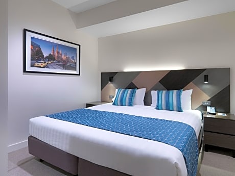 Located in the heart of Melbourne, Wyndham on William offers stylish accommodations within 10 minutes' walk of Melbourne's vibrant cafes, restaurants and bars. It features a rooftop heated pool, a fitness center and a library. Wyndham on William is 5 minutes' tram ride from Etihad Stadium, Festival Hall and Docklands. It is 10 minutes' walk from Queen Victoria Market. Melbourne Airport is 20 minutes' drive away. Guests can enjoy a show from one of Melbourne's iconic theaters including Princess Theater, 10 minutes' walk away. Each spacious apartment is air-conditioned offers modern décor. It features flat-screen TV, a refrigerator and tea and coffee making facilities. The private bathroom includes a shower. Hotel facilities include a 24-hour front desk, meeting rooms, and a BBQ area.