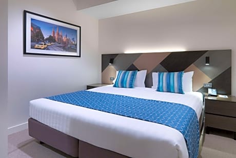 Located in the heart of Melbourne, Wyndham on William offers stylish accommodations within 10 minutes' walk of Melbourne's vibrant cafes, restaurants and bars. It features a rooftop heated pool, a fitness center and a library. Wyndham on William is 5 minutes' tram ride from Etihad Stadium, Festival Hall and Docklands. It is 10 minutes' walk from Queen Victoria Market. Melbourne Airport is 20 minutes' drive away. Guests can enjoy a show from one of Melbourne's iconic theaters including Princess Theater, 10 minutes' walk away. Each spacious apartment is air-conditioned offers modern décor. It features flat-screen TV, a refrigerator and tea and coffee making facilities. The private bathroom includes a shower. Hotel facilities include a 24-hour front desk, meeting rooms, and a BBQ area.