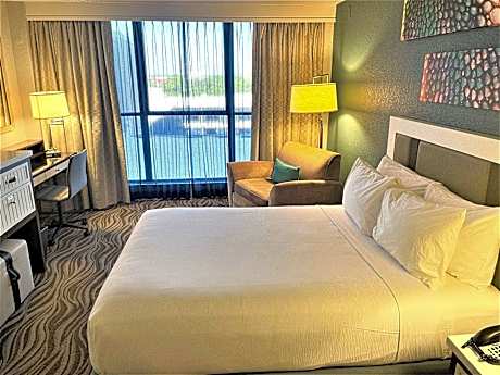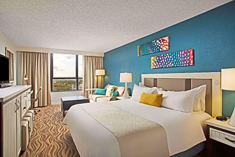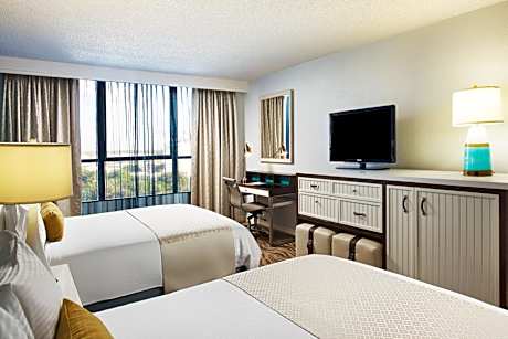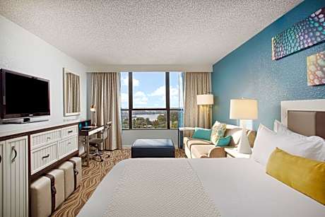This Lake Buena Vista hotel is in the Walt Disney World Resort® and has 2 heated pools and an aquatic playground. Disney Springs® is opposite the hotel. The hotel is an 11 minutes' drive from Epcot. Scheduled daily shuttle service/transportation to the four Walt Disney World theme parks is available. Reservations are required. Shuttle schedules and information are provided at check-in. Oasis Bar and Grill offers food and beverages by the pool. Joffrey's Coffee Shop is available for daily breakfast and serves coffee, assorted pastries and hot breakfast sandwiches. A 55-inch flat-screen cable TV and small refrigerator are in all rooms at this Orlando Wyndham Lake Buena Vista – Disney Springs® Area. Select rooms have a fireworks view. Sand volleyball, basketball courts are available on site at Wyndham Lake Buena Vista – Disney Springs® Area. A 24-hour reception, ticket service, and video game room are available as well. Disney’s Epcot, Animal Kingdom, and Magic Kingdom are within 12 minutes' drive of the property. Disney's Typhoon Lagoon water park is 1.7 mi away.