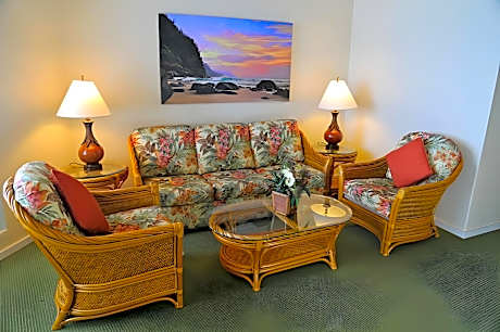 TA-173-554-2784-01 Located in Princeville on Kauai’s north coast, Club Wyndham Shearwater offers fantastic ocean views. It has an outdoor pool and apartments with a private terrace, free Wi-Fi and a spa bath. The apartments at Club Wyndham Shearwater feature carpeted floors and great views. Each one comes with flat-screen cable TV and a DVD player. There is a kitchen with a microwave, coffee-maker and a washing machine. The hotel offers massage services, and staff can provide information about what Hawaii has to offer. There are plenty of jogging routes in the surrounding area, and Woods and Princeville Golf Courses are next door. Club Wyndham Shearwater is 1.2 mi from both Hanalei Beach Park and Princeville Ranch Adventures, where you can go on various treetop zip lines. Lihue Airport is 45 minutes' drive away.