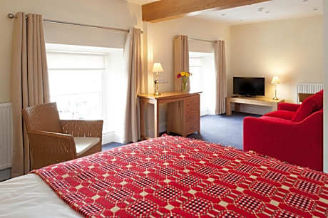 Nestled in the Cambrian Mountains in the heart of Tregaron, Y Talbot is a welcoming and award-winning hotel, restaurant and pub full of Welsh charm, roaring fires and some of the best food in the region. Head Chef Dafydd Watkin has cooked with Marco Pierre White and now cooks the food he wants to eat – comforting, confident, and dangerously moreish. His cheesecake? Local legend. We’re proud to be fully accessible, with step-free entrances, a ground-floor accessible bedroom, and thoughtful touches throughout. Families are welcome, dogs are fussed over, and muddy boots are part of the dress code. Our smooth tarmac car park, secure bike storage and drying room make us an ideal stop for motorcyclists and cyclists, while walkers and anglers love the peaceful location, local trails and full Welsh breakfast that follows. Whether you’re here for a quiet break, an outdoor adventure or simply want a good meal with a warm welcome, we promise you’ll leave with a full belly and a smile. Our staff know your name (and your dog’s), and our bar is often the start of stories you’ll retell for years. Real Wales, real food, real hospitality.