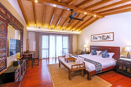 Set on the banks of Dragon River, Yangshuo Tea Cozy--one way Free pick up from airport or TS 4 nights is surrounded by the breathtaking Karst peaks and large expanses of paddy fields. A relaxing retreat from the city, the hotel is a 10 minute drive from the historic Yangshuo West Street. Rustic wood walls, tastefully Chinese-style decoration and classic works of art add to the charm of this property. All rooms are fitted with fine beddings and traditional carved wood furnishings. Each unit has a balcony offering panoramic views of the surrounding greenery. Free toiletries, a flat-screen TV and a minibar are also included. Tea Cozy is a 1.5-hour drive from Guiling Liangjiang Airport and a 1.5-hour drive from Guiling Train Station. The staff at the tour desk can organize kayaking, cycling trips and camping. Guests can also enjoy cooking and tea lessons, as well as tai-chi classes. Free wired and wireless internet is available in the entire hotel. For meals, enjoy fine Chinese and Western dishes on the rooftop bar and restaurant, where guests can enjoy the spectacular views of Guilin.