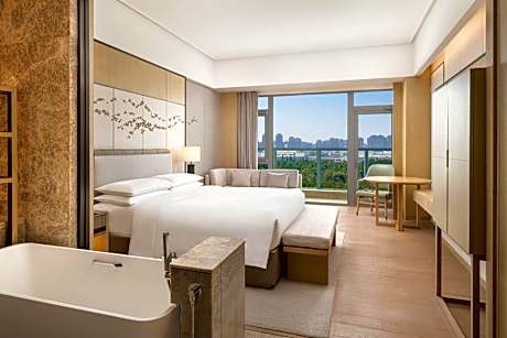 Experience an abundance of unparalleled facilities and features at Yantai Marriott Hotel.Car hire offerings at the hotel enhance the ease of discovering Yantai. Guests can avail parking facilities at the hotel. During your stay at this fantastic hotel, the attentive front desk personnel can provide you with a range of amenities such as concierge service and safety deposit boxes.During leisurely days and evenings, on-site amenities such as daily housekeeping enable you to fully enjoy your accommodation.At Yantai Marriott Hotel, every guestroom is provided with convenient amenities and fittings to ensure a comfortable stay. Enhance your experience at hotel with the knowledge that certain rooms are equipped with linen service, blackout curtains and air conditioning for your convenience. A few accommodations within Yantai Marriott Hotel offer unique design elements such as a balcony or terrace. Certain rooms boast in-room amusement features such as television and cable TV, offering guests an enjoyable stay.In select rooms within the hotel, a refrigerator, bottled water, instant tea and mini bar is available to cater to your requirements when desired.It is worth noting that certain guest bathrooms feature a hair dryer, toiletries, bathrobes and towels for your convenience. Begin your day with a scrumptious on-site breakfast available each morning at Yantai Marriott Hotel. Begin your day feeling refreshed and invigorated as you enjoy a delightful cup of quality coffee available at the cafe situated within the hotel.
