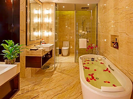 Yinchuan International Convention Centre Hotel offers top-notch services and amenities, ensuring guests experience utmost comfort. Share your photos and respond to emails at your convenience, thanks to the free Wi-Fi internet access offered by hotel. Experience the wonders of Yinchuan with ease by utilizing the services provided at car hire. Visitors can take advantage of complimentary parking directly at the hotel.Reception services such as concierge service, express check-in or check-out, luggage storage and safety deposit boxes are available to accommodate your requirements.Traveling with minimal baggage is achievable at Yinchuan International Convention Centre Hotel, as the hotel's dry cleaning service and laundry service ensures your garments stay fresh. Room amenities like 24-hour room service, room service and daily housekeeping contribute to making a perfect selection for your stay.Minor items you neglected to bring won't cause major issues! Simply visit convenience stores to acquire what's necessary. Smoking is limited to specified smoking zones.Each accommodation at Yinchuan International Convention Centre Hotel is thoughtfully created and adorned to provide visitors with a comfortable, home-like atmosphere.In certain rooms, the hotel offers linen service and air conditioning for guest convenience and satisfaction. At Yinchuan International Convention Centre Hotel, the uniquely tailored rooms provide a configuration choice resembling a balcony or terrace. In select rooms, guests at the hotel can enjoy top-notch in-room entertainment with television and cable TV available for their convenience. Rest assured, in a few chosen rooms, you will find the convenience of a refrigerator, bottled water, a coffee or tea maker and mini bar at your disposal.Understanding the significance of bathroom facilities in enhancing visitor contentment, hotel offers a hair dryer, toiletries and bathrobes within a few chosen chambers. Embark on your holiday experience in the most ideal manner. Commence each morning of your visit with an on-site breakfast.Should you prefer not to venture out for a meal, the enticing culinary choices at hotel are always available for your satisfaction.No matter your specific dietary needs, rest assured that Yinchuan International Convention Centre Hotel provides an array of halal choices to ensure your dining experience is nothing short of delightful. For those who prefer savoring meals within their personal space, Yinchuan International Convention Centre Hotel offers the convenience of doorstep grocery delivery, allowing you to prepare and enjoy food in your room. Throughout the day, engage in the entertaining activities available at Yinchuan International Convention Centre Hotel. Unwind after a long day by stopping by salon, steam room and spa to rejuvenate your senses. Each day at hotel, immerse yourself in the invigorating waters of the pool, perfect for a rejuvenating plunge or a series of revitalizing laps. For individuals who don't want to skip their exercise routine, visiting the hotel fitness center ensures you maintain your vitality and wellness.