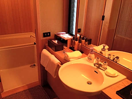 The quadruple room features a shared bathroom, air conditioning, tatami, as well as a seating area with a flat-screen TV. The quadruple room provides heating. The unit offers 3 futons.