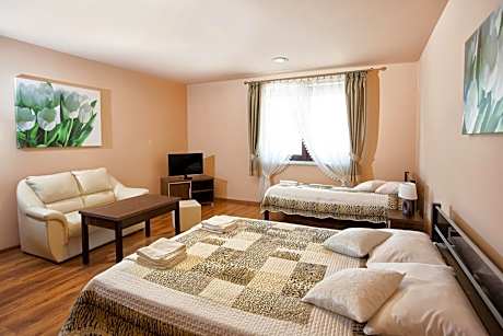 The quadruple room provides a tea and coffee maker and a wardrobe, as well as a private bathroom featuring a walk-in shower. The unit offers 3 beds.