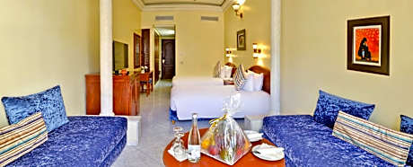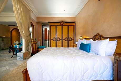 Located in Fès City Center, this 5-star hotel offers 3 swimming pools,beauty treatments and a tennis court in the garden. It is 1.9 mi from the Botanic Gardens. The air-conditioned guest rooms combine classical décor with Moroccan accessories. The rooms feature a seating area and a balcony with views of the mountain or the outdoor pool. Each room is equipped with satellite TV and a mini-bar. There are 6 restaurants at Zalagh Parc Palace serving a variety of different cuisine, including Italian and traditional Moroccan dishes. An American breakfast is served every morning. This hotel also features 3 elegant lounge bars where guests can use the free Wi-Fi access. Guests have free access to the Paradiesso nightclub. With free private parking on site, limousine rental with a driver is also available upon request. The Zalagh Parc Palace is only 1.2 mi from Fes Medina, which is the oldest and largest medina in the world.