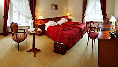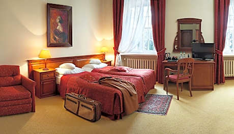 Housed in a magnificent 16th-century castle surrounded by peaceful countryside just west of Lądek Zdrój, Zamek Na Skale's beautiful interiors and great spa and relaxation facilities promise the perfect break. With a range of accommodations types to choose from, including standard and superior rooms, as well as spacious apartments, Zamek Na Skale has something for every taste and requirement. What all units have in common is elegance, comfort and facilities such as satellite and pay TV, free Wi-Fi and room service. The luxurious spa and wellness center of Zamek Na Skale will provide some of the highlights of your stay. It includes an indoor swimming pool, a hot tub, saunas, massage facilities and a beauty salon. Sample sophisticated dishes of Polish and international cuisine at the restaurant, complemented by a well-stocked wine cellar, romantic music and a beautiful setting. Take a walk around the beautiful gardens, enjoy a game of billiards or a bicycle ride. Services such as airport shuttle, child minding and laundry are designed to take any hassle out of your stay. Zamek na Skale is located in the Klodzko Valley, by the River Biala Ladecka. Charming Lądek Zdrój, one of the oldest health resorts in Europe, is around 3.7 miles away.