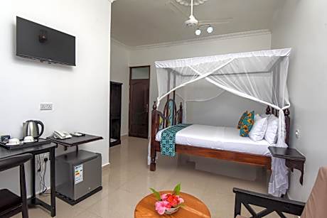 Located in Mtoni, 3.7 miles from Peace Memorial Museum, Zanzibar View Hotel provides accommodations with an outdoor swimming pool, free private parking, a garden and a terrace. This 2-star hotel offers a restaurant. The property has a 24-hour front desk, airport transportation, room service and free WiFi throughout the property. The hotel will provide guests with air-conditioned rooms offering a desk, an electric tea pot, a minibar, a safety deposit box, a flat-screen TV, a balcony and a private bathroom with a bidet. All guest rooms include a closet. The breakfast offers à la carte, Full English/Irish or American options. At Zanzibar View Hotel guests are welcome to use a hot tub. Cinema Afrique is 3.1 miles from the accommodation, while Old Dispensary is 3.3 miles away. Abeid Amani Karume International Airport is 6.8 miles from the property.