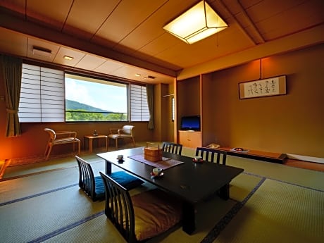 The twin room includes a private bathroom, well-fitted with a bath, a shower, a bidet, a hairdryer and slippers. The air-conditioned twin room features a flat-screen TV with satellite channels, tatami, a tea and coffee maker, a wardrobe as well as mountain views. The unit has 2 beds.