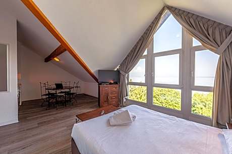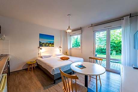 Offering panoramic lake views, Zenitude Evian Les Terrasses du Lac, an Ascend Collection Hotel is located just a few steps from the Evian golf course, 20 minutes' walk from the shore of Lake Léman. There is a heated outdoor pool, and the chalet-style apartments all feature a balcony or terrace. Free WiFi access is available. The apartments at Zenitude hôtel & Résidences Les Terrasses du Lac come with equipped kitchens and a flat-screen TV with French, English, German and Italian channels. Bed linen and towels are provided. A continental buffet breakfast is available each morning, which includes pastries, cold meats, yogurt, cereal, local cheese, hot and cold drinks, and jams. Thollon and Bernex ski resorts are less than 30 minutes' drive away and the beach and water-sports center are only 0.6 mi away. Evian is a 5-minute drive away. Free private parking is available at the residence.