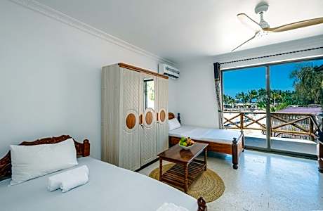 Located in Nungwi, Zenobia Beach Resort offers beachfront accommodations a few steps from Nungwi Beach and provides facilities like a terrace, a restaurant and a bar. With a garden, the 3-star hotel has air-conditioned rooms with free WiFi, each with a private bathroom. The property has room service, a 24-hour front desk and currency exchange for guests. At the hotel, each room includes a closet. Each room is equipped with a safety deposit box, while some rooms are equipped with a balcony and others also offer sea views. Guest rooms will provide guests with a desk and an electric tea pot. An à la carte, continental or halal breakfast is available at the property. Kichwele Forest Reserve is 27 miles from Zenobia Beach Resort, while Mangapwani Coral Cave is 30 miles from the property. Abeid Amani Karume International Airport is 38 miles away, and the property offers a paid airport shuttle service.