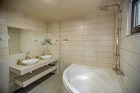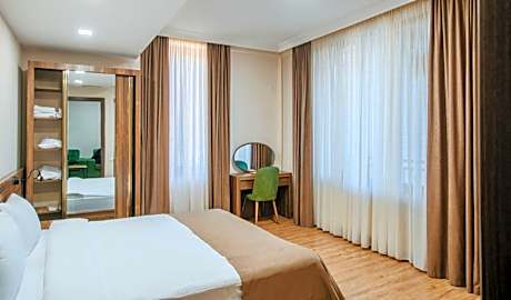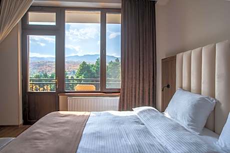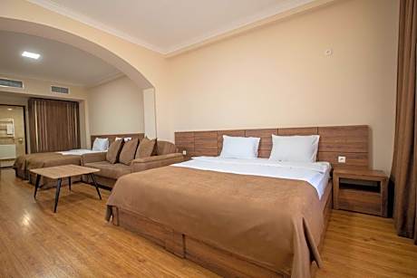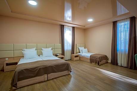 Located in Telavi, 1.8 miles from King Erekle II Palace, Zuzumbo Resort & Spa provides accommodations with a seasonal outdoor swimming pool, free private parking, a fitness center and a garden. Providing a restaurant, the property also features a terrace, as well as an indoor pool and a sauna. The property has room service and a 24-hour front desk for guests. All guest rooms at the resort come with air conditioning, a seating area, a flat-screen TV with satellite channels, a safety deposit box and a private bathroom with a bidet, free toiletries and a hairdryer. Every room comes with an electric tea pot, while some rooms here will provide you with a balcony and others also provide guests with city views. The rooms will provide guests with a fridge. A buffet breakfast is available at Zuzumbo Resort & Spa. The accommodation has a playground. You can play pool and table tennis at this 4-star resort, and the area is popular for cycling. King Erekle II Palace is 1.8 miles from Zuzumbo Resort & Spa, while Alaverdi St. George Cathedral is 12 miles away. Tbilisi International Airport is 51 miles from the property.